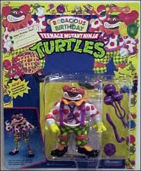 One of the core aspects of the line was the countless variants of the Teenage Mutant Ninja Turtles. There were Star Trek turtles, military turtles, and yes, clown turtles. Shredder, Bebop, Rocksteady, and even April got their fair share as well. Surely, this one is in character (as he's the silliest) but it's still bizarre.